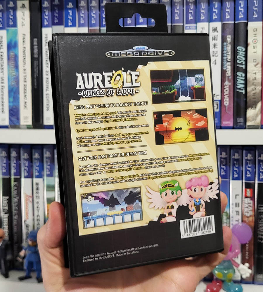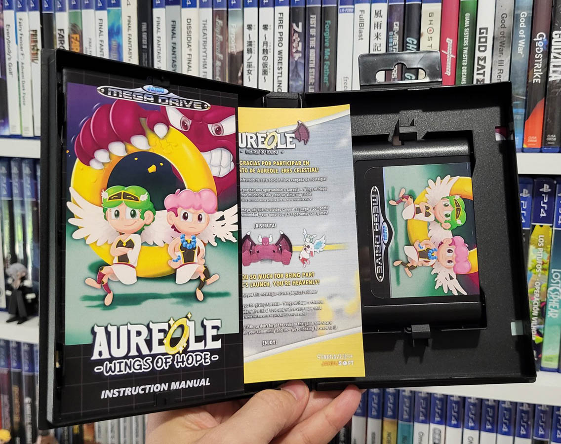Aureole – Wings of Hope for the Mega Drive is a demake-style micro-puzzle created as a promotional companion to the main modern game. Released in an extremely limited run of just 40 physical cartridges, it served as a press kit bonus rather than a standalone commercial title. Despite its small scale, the presentation is clean and visually pleasant for 16-bit hardware.