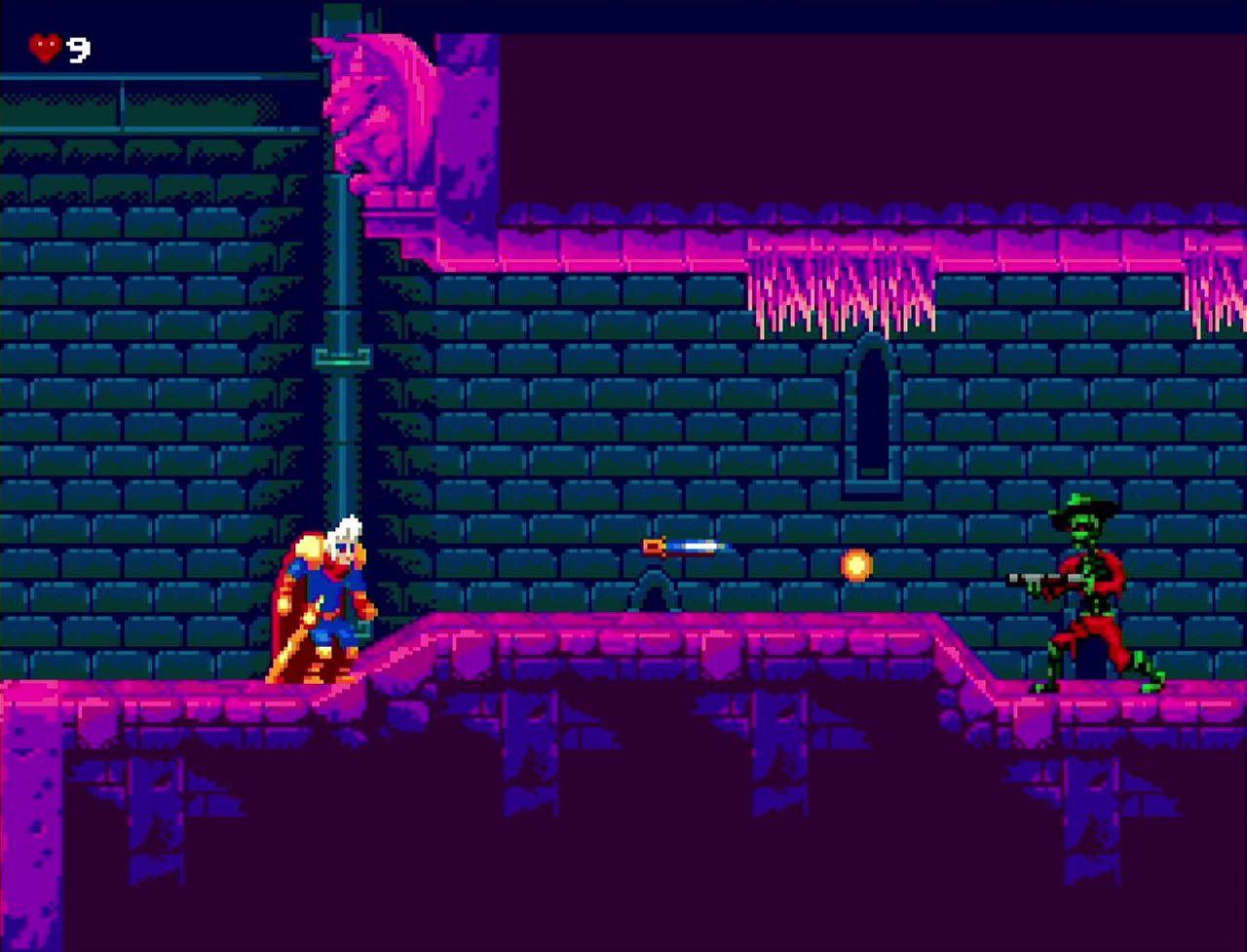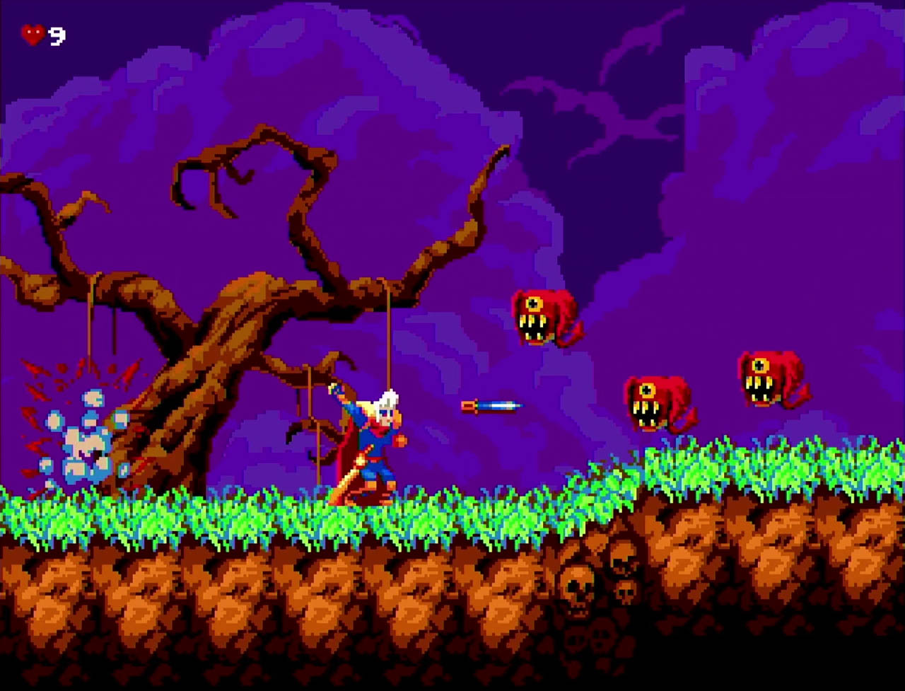 Players take control of a knight armed with both a sword and throwable daggers, battling through graveyards and castles filled with undead foes. The game allows choosing between Normal and Easy modes, and offers customizable button layouts. While short and modest in scale, its responsive mechanics, gothic pixel art, and nostalgic tone make it a charming homage to 8-bit and 16-bit classics.