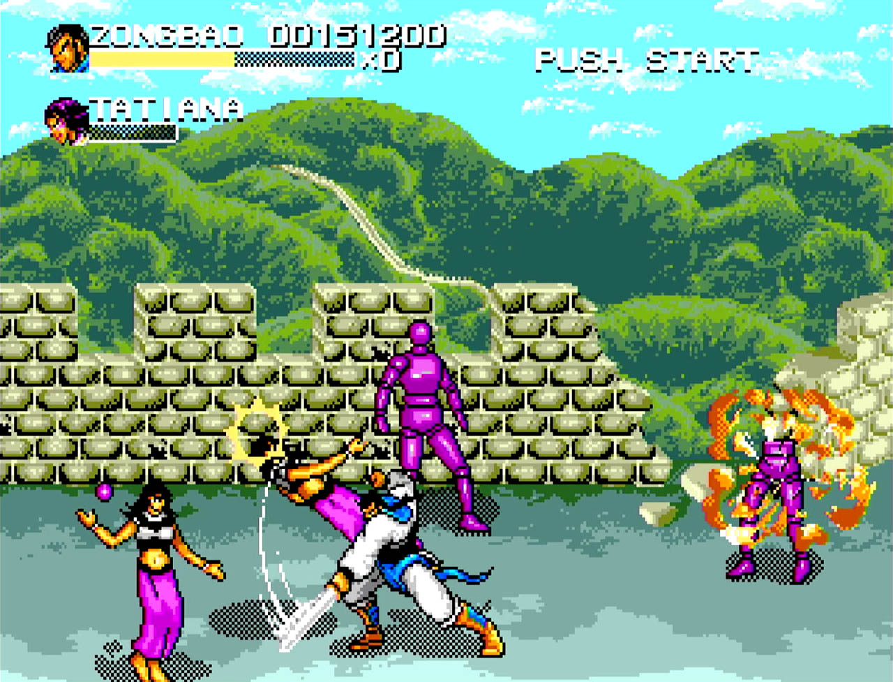 Players can choose from four characters, each with different strengths and weaknesses. The gameplay is straightforward and somewhat barebones: small stages, a limited enemy roster, and a modest set of attacks. Visually, the game holds up well, and while the music is simple, it fits the historical atmosphere. As a beat ’em up, it’s very average — but as a polished release of an obscure Chinese bootleg, it’s an interesting piece of gaming history.