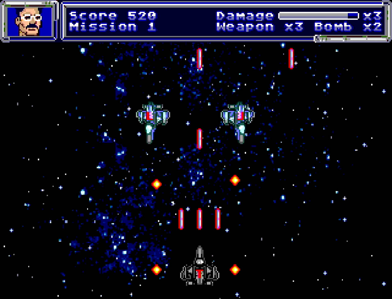 Beyond that, the experience is fairly average. Levels look similar to one another, the soundtrack quickly becomes repetitive, and boss fights tend to drag on, often boiling down to finding a safe spot and holding fire for several minutes. While the game features a stylish character selection screen at the start, the chosen pilot doesn’t seem to affect gameplay in any meaningful way.